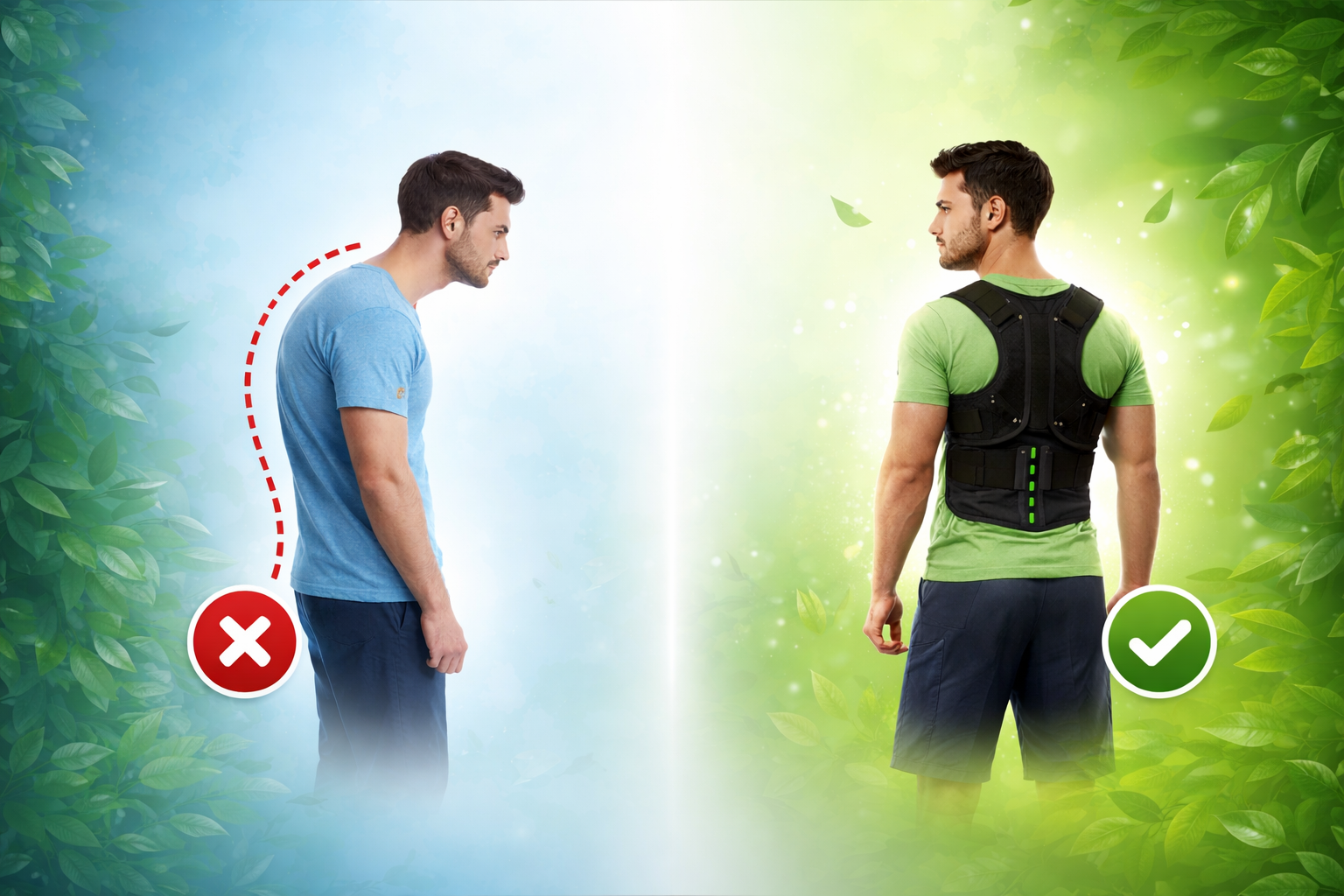 Corretor de postura ajustável para homens e mulheres, cinta de suporte lombar confortável – invisível e vestível para escritório, academia e atividades ao ar livre.